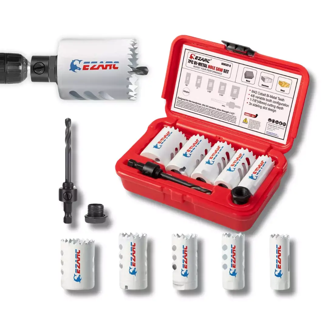 EZARC 7 Piece Hole Saw Set Bi-Metal 22mm-38mm cutting depth 48mm